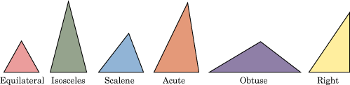 | Acute |   | All angles are less than 90 degrees. |