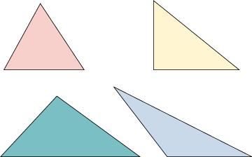Find the midpoints of the sides of the triangles below and connect them to form new triangles. Notice that these triangles separate the original triangles into four triangles. What do you notice about these four triangles?